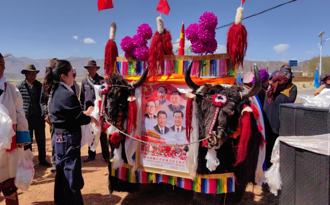 活动在极具藏族风情的传统舞蹈——《扎西雪巴》中拉开帷幕,在仪式现场村民们身着节日盛装,手捧切玛和青稞酒陆续来到田间,一辆辆农业机械在农田上整齐排列,一面面鲜艳的五星红旗随风飘扬,一条条洁白的哈达系在车头,一缕缕桑烟袅袅升起,承载着村民们对农业生产五谷丰登的美好祝愿。